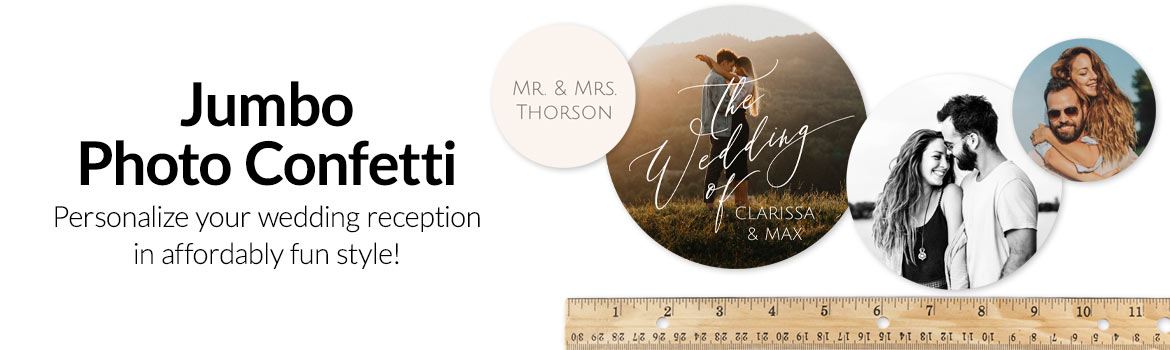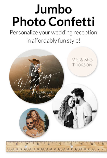 Looking for a way to sprinkle some extra personality into your big day? Our Jumbo Wedding Confetti is here to party! These custom pieces of photo confetti aren't just ridiculously fun — they’re also affordable, versatile, and downright adorable. Whether you’re tossing them during your grand entrance or scattering them on tables, this wedding photo decor is sure to make your celebration feel one-of-a-kind.