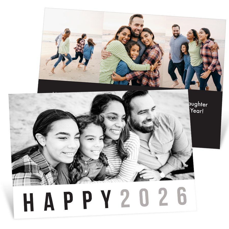 So simple, it's absolutely perfect! These New Years cards feature a minimalist style you can't help but appreciate with a bold message at the bottom in your choice of colors and your choice of background color. On the back, you can choose no photo, one photo or multiple photos and you can choose from a variety of patterns or colors for the background. All text is editable on the back with choice of fonts and colors.