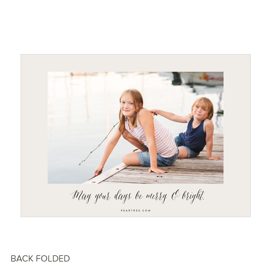 These Christmas cards unfold in a big way with photos and text that let you tell a story in pictures. One large photo fills the front, and the greeting at the top is editable. You can also change the text color and move it to wherever it fits best on your photo. Inside, four photos are lined up in Polaroid-style frames, with editable captions and dates below each photo so you can give the highlights of your year. All the text is editable, and you can choose from over 80 colors for the frames, text and background color. The back of these holiday photo cards is a gold faux-foil chevrons pattern. At 14.5-inches when unfolded, there's plenty of room for personalization on these Christmas cards!