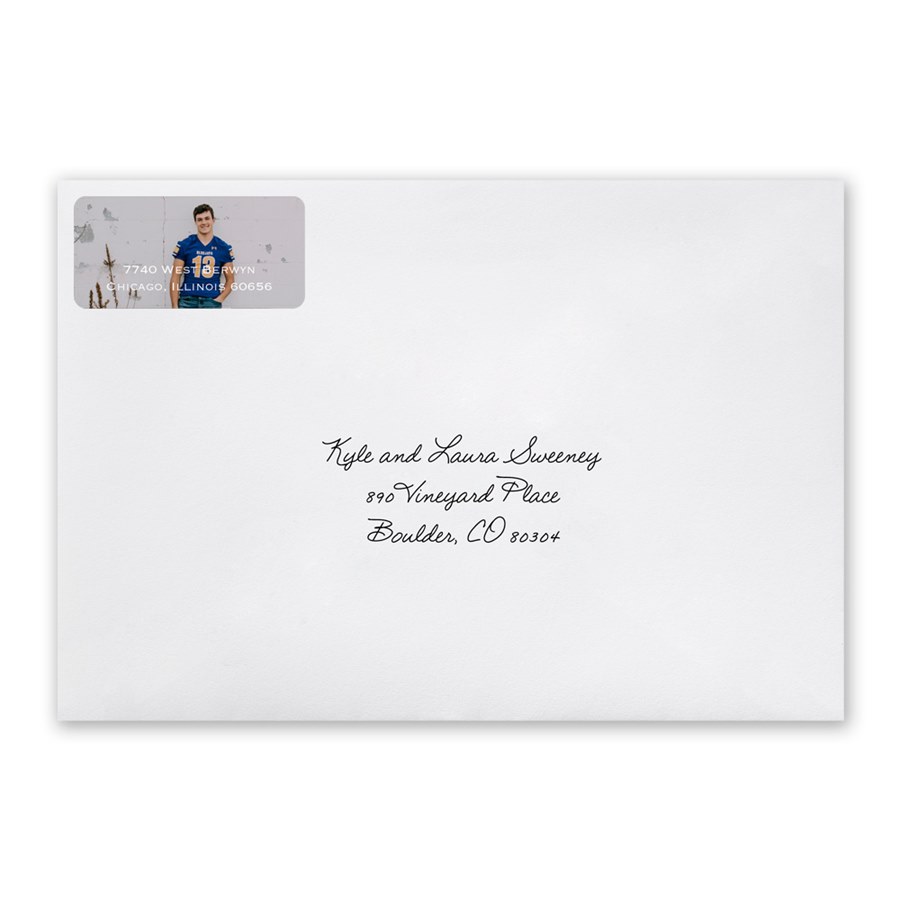These photo address labels are the perfect way to top off your envelopes! Add a photo of your choice, then add your address details in the font and text color of your choice.