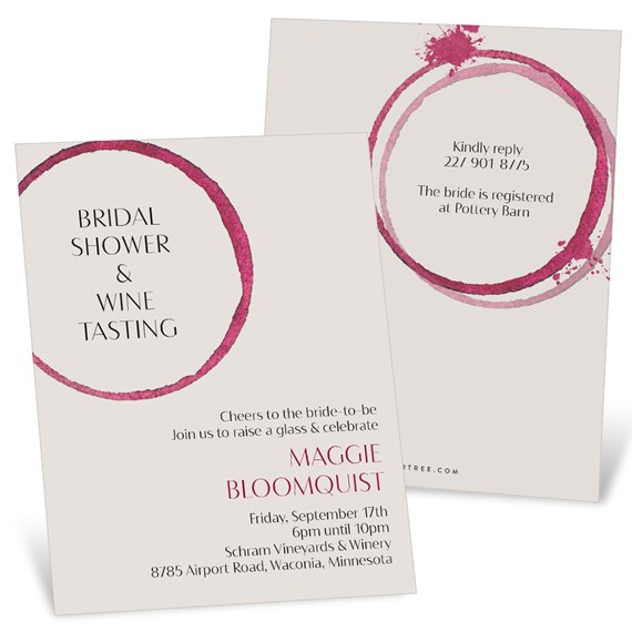 A bridal shower and a wine tasting in one? What a fun idea! These are the perfect bridal shower invitations for the event, with a wine-stained-napkin look that gets the theme across oh, so perfectly. Update the text and background colors to match your event. You can create your own bridal shower invitations in minutes when you start with a great design and personalize them in minutes online!