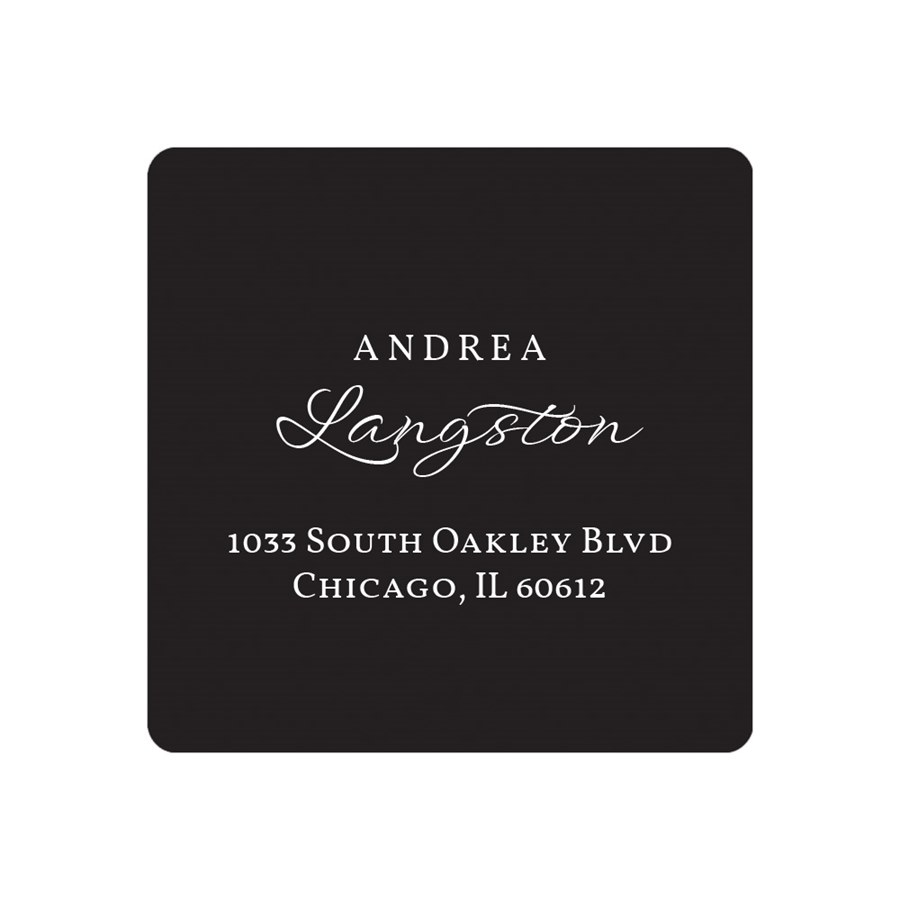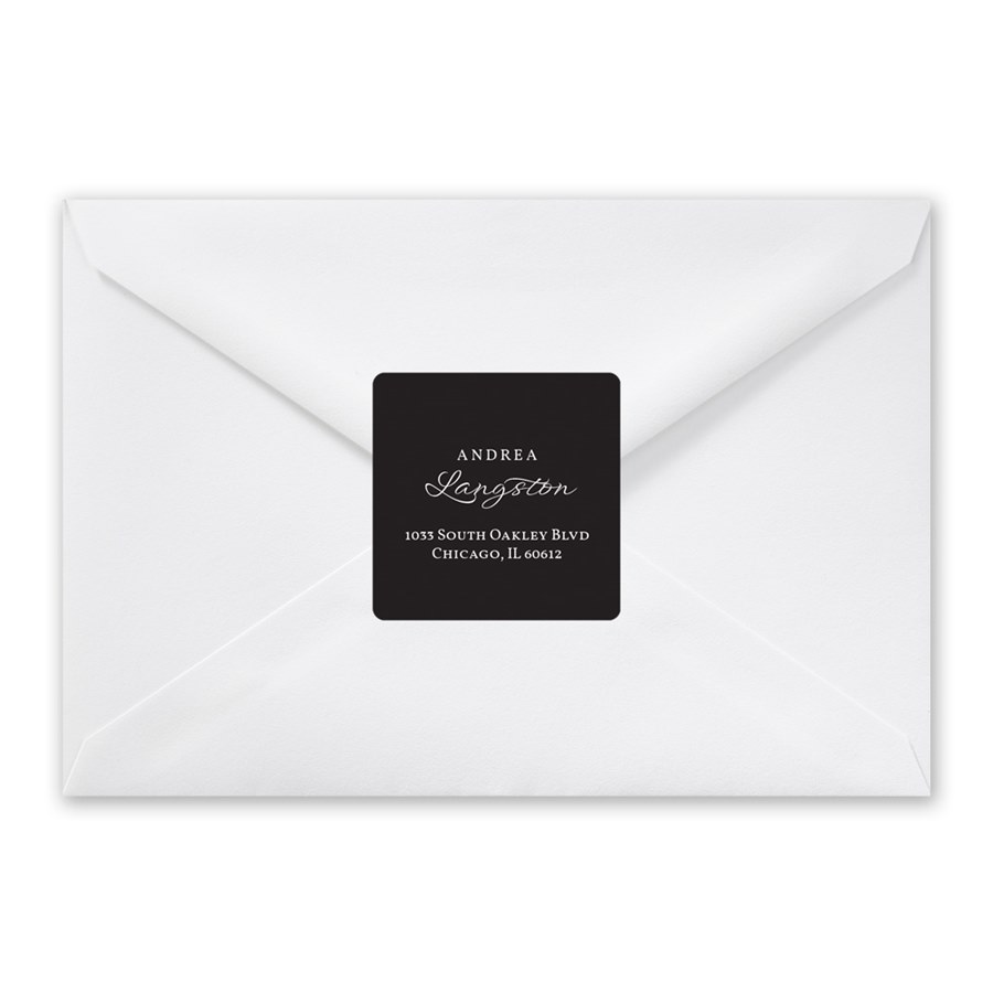 Sophisticated style is delivered when you add these elegant return address labels to your envelope. A mix of traditional and script text styles creates a memorable look, and your choice of text color makes it personalized. The perfect touch for any envelope and any occasion!