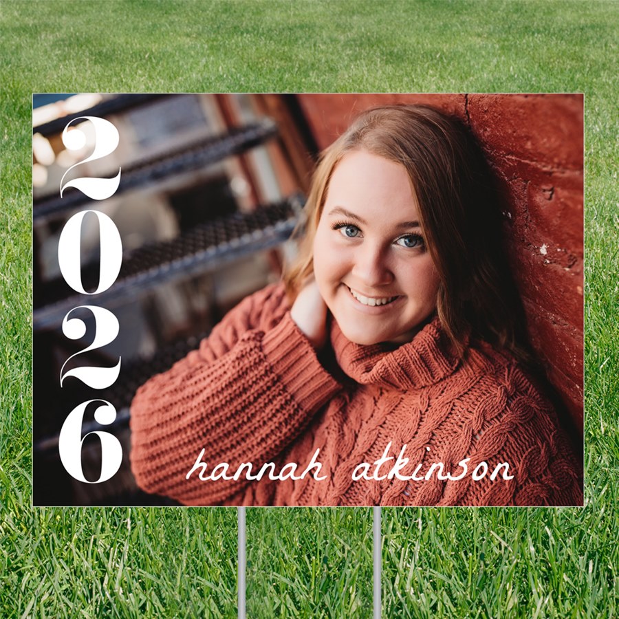 They're graduating - share it with every passerby! This photo yard sign is a perfect way to show off your grad's success with the whole neighborhood. Add a photo, personalize the editable text, and then update the colors to suit your style. This yard sign is made from weatherproof, corrugated board and includes a metal H stake for mounting and inserting into the ground. Yard signs are shipped separately from the rest of your order.