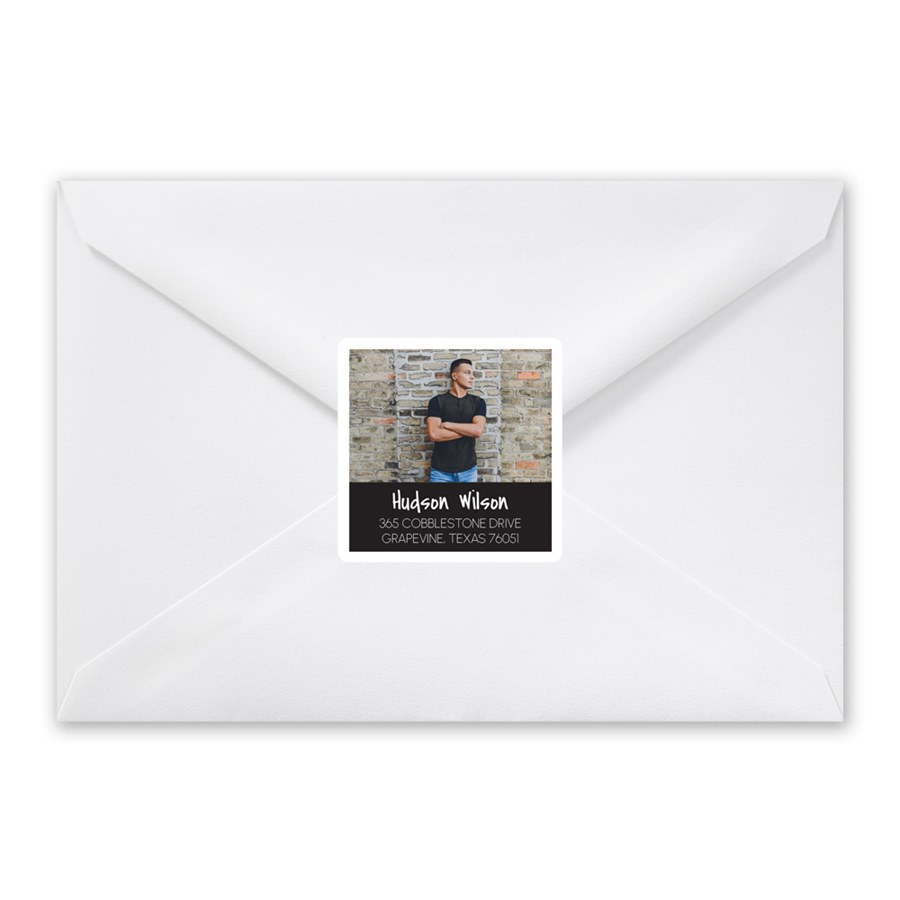 Make your envelopes a little extra with these fun graduation address labels with a photo. You may update all the colors on these photo labels to fit your style.