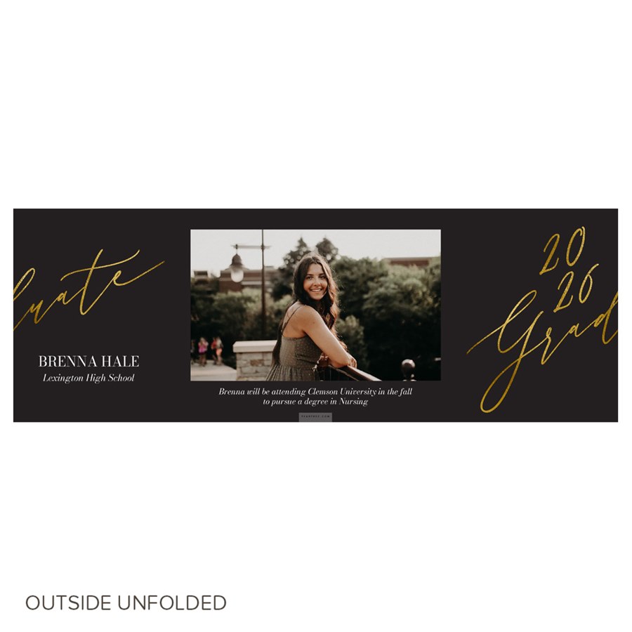 Their graduation day is here and their future is about to begin. Share their achievement with this Golden Graduate Graduation Invitation. Their graduation year is printed in gold ink on the front of this gatefold design. The inside holds a collage of photographs and your custom announcement or party details. You can update the background color and editable text colors on this design to suit your style.