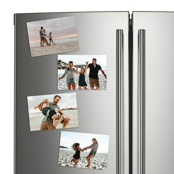 This set of 4 photo magnets are the cutest photo gift for loved ones or yourself! Each magnet measures 7” x 5” and is printed on 16pt magnetic stock. Add your photos and even add custom text. As affordable as they are fun, the possibilities are endless with these personalized photo magnets.
