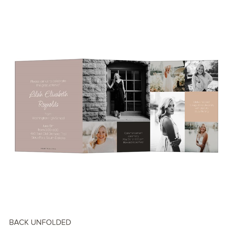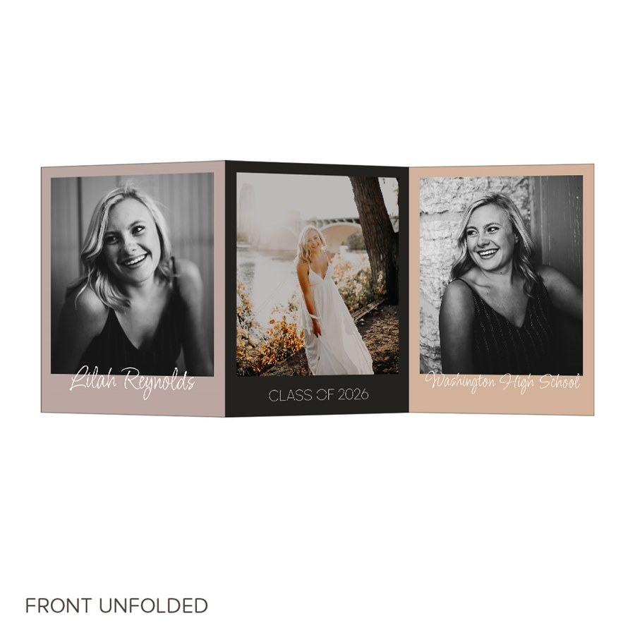 This Tricolor, trifold graduation party invitation is colorful and stylish, and can be personalized in the colors and fonts that you choose. The folding format is a perfect way to honor your graduate with photos, achievements and more. You can also add your graduation details, or customize to suit your own style.