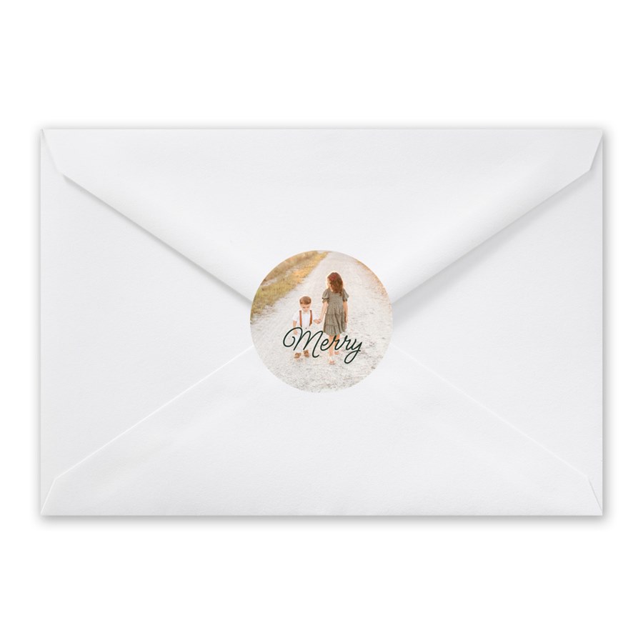 Add a merry detail to your Christmas cards with this super-cute photo envelope seal. Your custom text is printed over your photo on this fun and festive sticker.