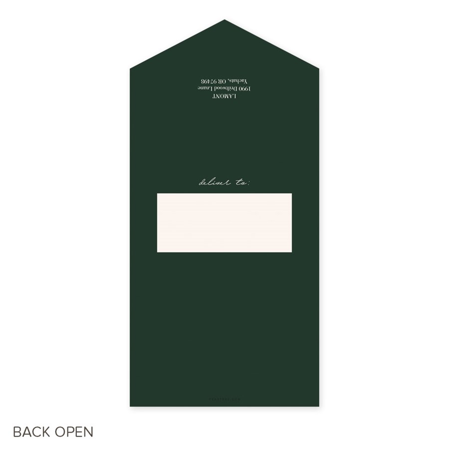 This all-in-one Script Christmas card includes your custom holiday message and favorite photos. Seal and Sends are self-mailing – no need for envelopes! Simply fold, secure it with clear seals (included) and drop it in the mail. This photo collage Christmas card features your photos, along with custom wording. The phrase, “Merry Christmas” is featured on the front. You may move the placement of the wording to fit your photos best. You may update all the colors to create a design you love.
