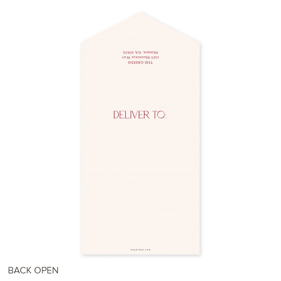 This sparkly, all-in-one Glowing Border Christmas card includes your custom holiday message and favorite photos. Seal and Sends are self-mailing – no need for envelopes! Simply fold, secure it with clear seals (included) and drop it in the mail. This photo holiday card features the phrase “Merry Christmas” on the front with twinkling holiday lights. You may move the placement of the wording to fit your photo best. The gold details on this photo card are printed using golden ink. You may update all the background and font colors to create a design you love.