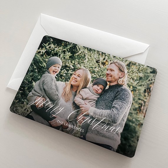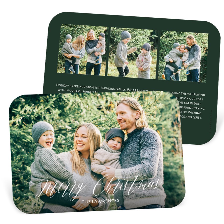 This stunning photo Around the Edges Christmas card features rounded corners paired with classic style. The front features your photo and custom text. You may update all the colors to create a design you love. Personalize this photo Christmas card, and create a custom look with endless layout, photo, design and text options.