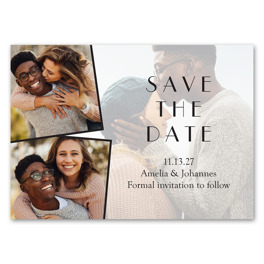 This horizontal save the date magnet gives you the fun, personalized style you need and affordable price tag you want. A faint screen covers a part of your main photo, with your custom wording displayed in the frame. You can update the photo border colors, text colors and fonts to suit your style.