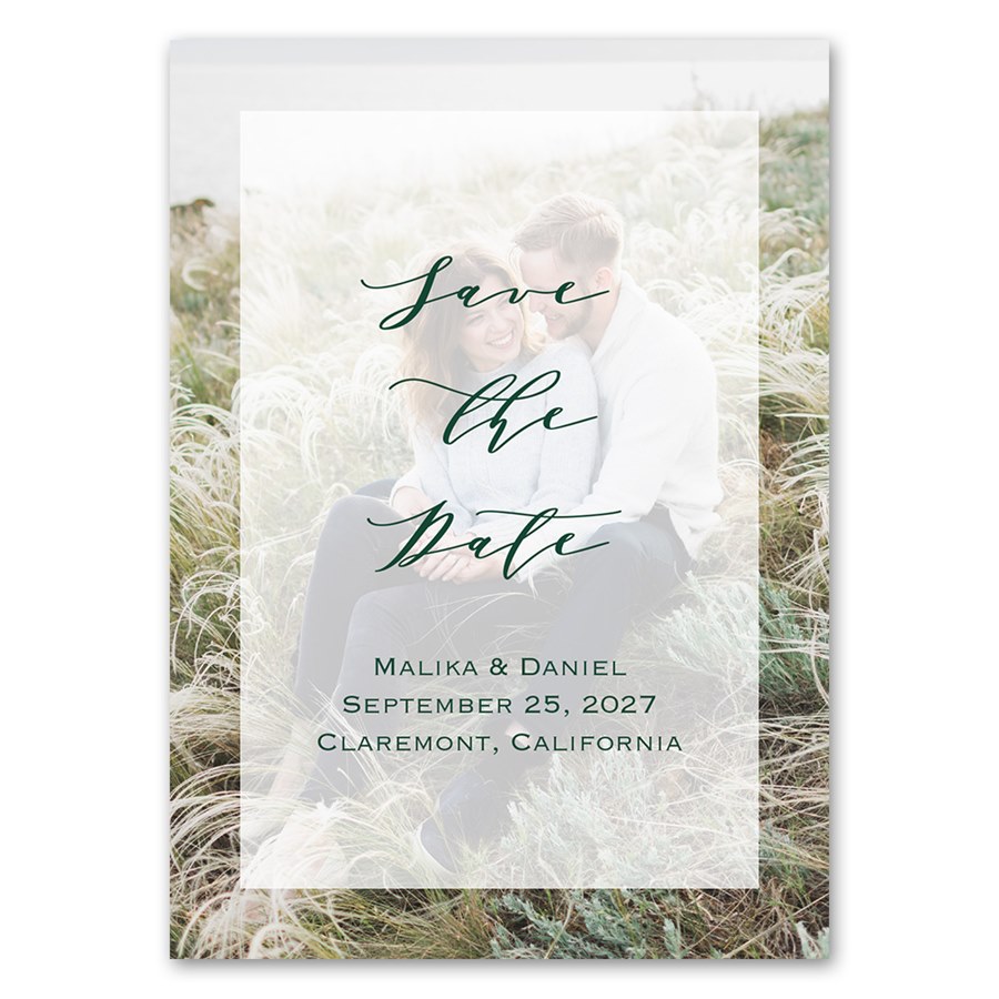 This beautiful save the date magnet gives you the beautiful style you need and affordable price tag you want. A faint screen covers a part of your photo, with your custom wording displayed in the frame. You can update the text colors and fonts to suit your style.