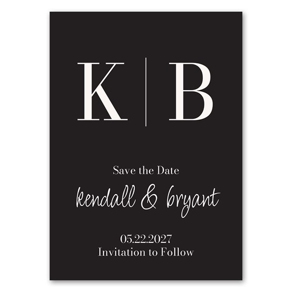 Yes, your save the date can be cheap and modern and stunning! This typography save the date magnet features your initials and names on the front and along with your custom text. You may update all the colors on this modern save the date to fit your own style.