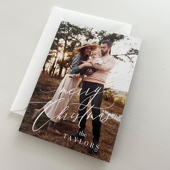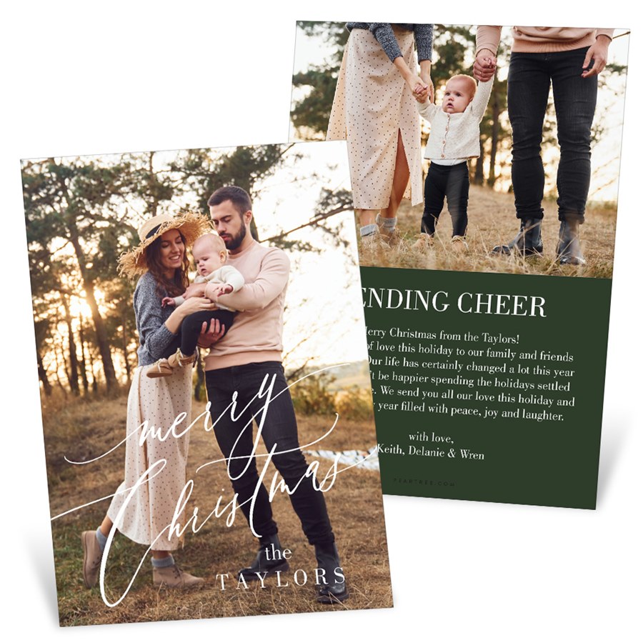 This Festive Font photo Christmas card features your favorite photo paired with classic style. The front features your photo and the phrase "Merry Christmas." You can move the placement of the wording to fit your card best. You may update all the colors to create a design you love. Personalize this photo Christmas card, and create a custom look with endless layout, photo, design and text options.