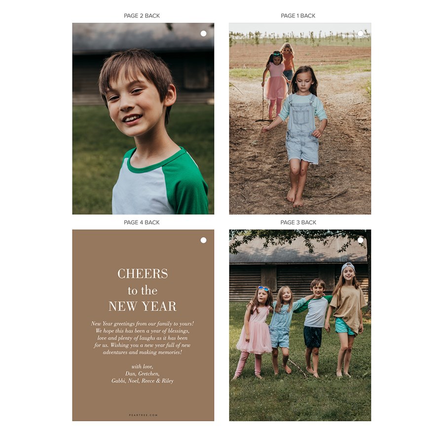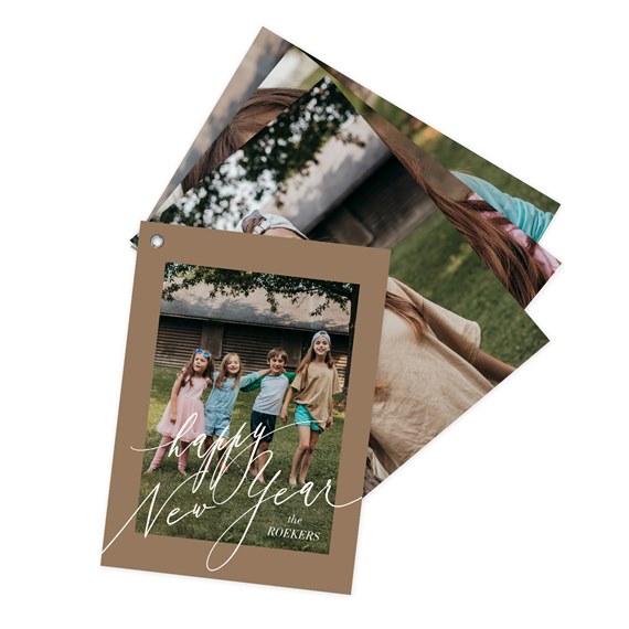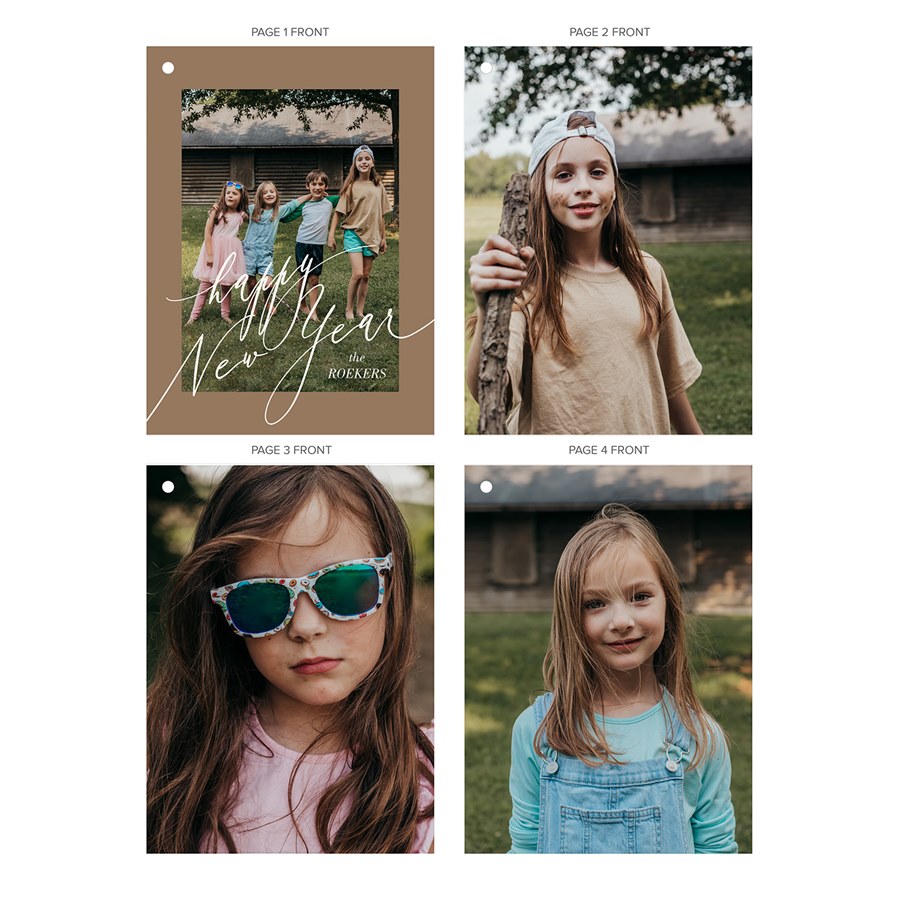 This holiday season, send this Calligraphy New Year Card that stands out from the crowd. This luxury Christmas card is a swatch-book style design featuring your own beautiful family. The front featured a stylish border in your choice of color to fit your style. It includes four double-sided cards bound together by a grommet. Personalize your swatchbook, and create a custom look with endless layout, photo, design and text options.