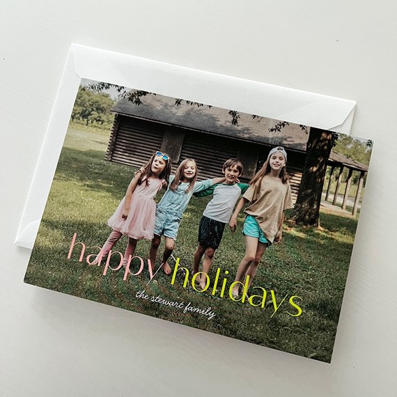 Send beautiful, Bold and Bright Christmas wishes to your friends and family this year with this simple photo holiday card. This card features a simple and cheerful design that lets your family shine! Personalize this photo holiday card, and create a custom look with endless color, photo, design and text options.