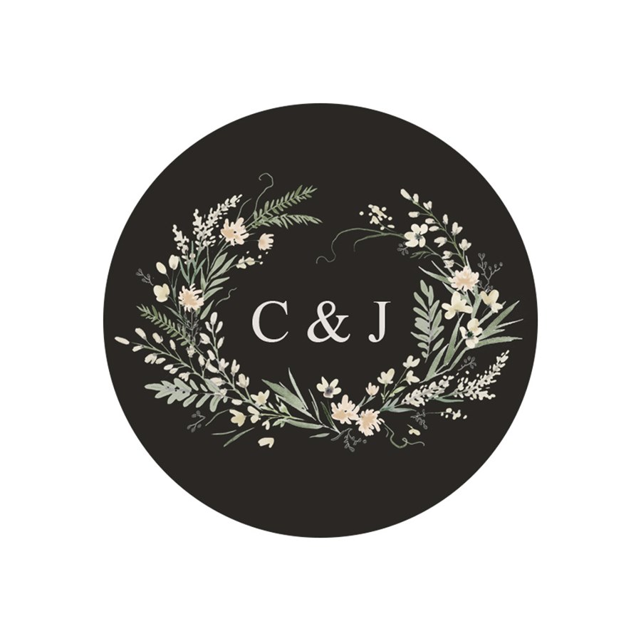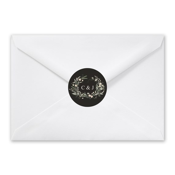 Add some extra style to your save the dates, wedding invites or even your rehearsal dinner invitations with these Wildflower Frame envelope seals. White floral and greenery surround your custom text. You may update the background and text colors and fonts to fit your style.