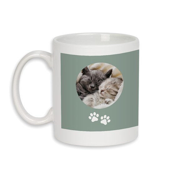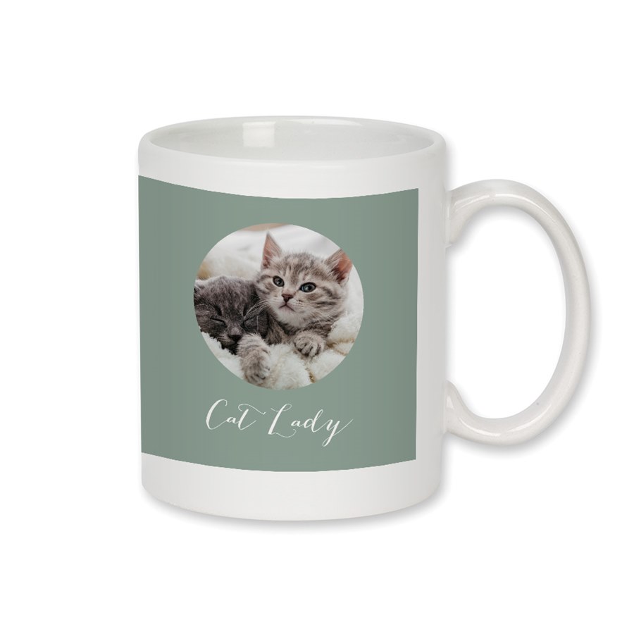 Calling all cat lovers! This Cat Lady Ceramic Mug is the purr-fect way to show off your love for your furry friends. Personalize it with 2 of your favorite photos, adorable paw prints, and custom text to add your cats’ names, a fun message, or anything you like! Plus, you can choose the background color to make it totally your own. Whether you’re treating yourself or looking for a thoughtful coffee mug for cat lovers, this one’s sure to become a favorite.