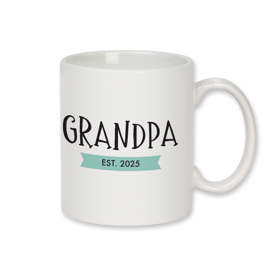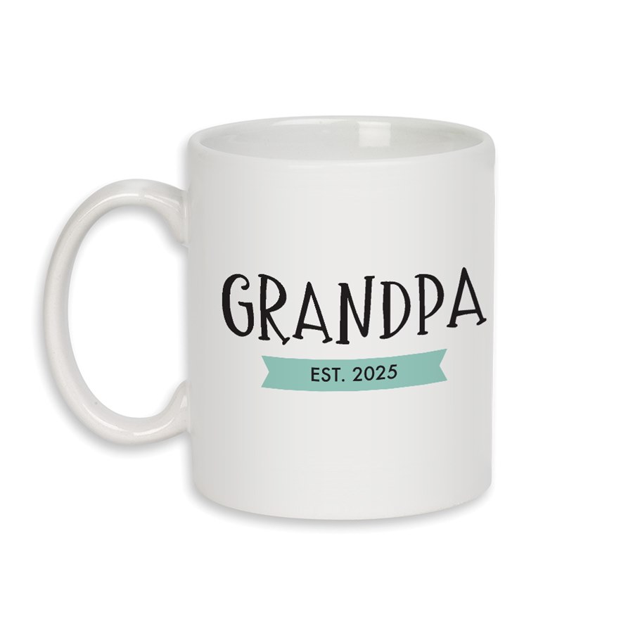 Celebrate the New Grandpa in your life with a personalized Grandpa's Mug that marks the start of his grandparent journey! This ceramic coffee mug for new grandpa features the word “Grandpa” on the front and back in your choice of color and a customizable text box where you can add the year he officially became a grandpa, or any text that you choose. Whether it’s for Father’s Day, a new baby announcement, or just to show him some love, this grandparent mug is the perfect way to honor this special milestone.