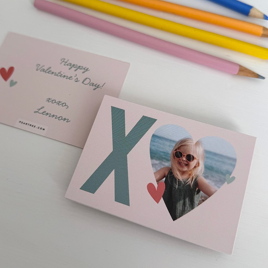 Deliver personalized Valentine's wishes with these XO Classroom Valentine Cards. Perfect for handing out at school, these mini cards are bursting with adorable style! Personalize the front side with your photo and change the colors to suit your style. On the backside, update the text to the message of your choice.