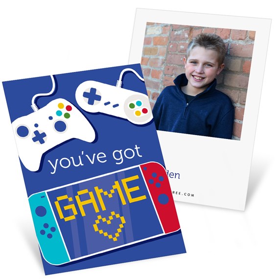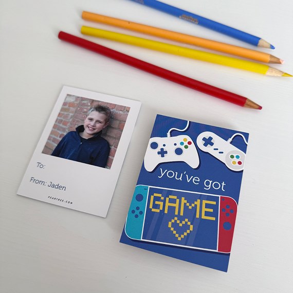 Wish everyone an epic Valentine's Day with these fun, Gamer Classroom Valentine's Day Cards. Perfect for handing out at school, these mini cards are bursting with style! The front is printed as shown with this video game design and the phrase "You Got Game." Personalize the backside with a photo, custom text and the background color of your choice to make it perfect for your little gamer cupid.
