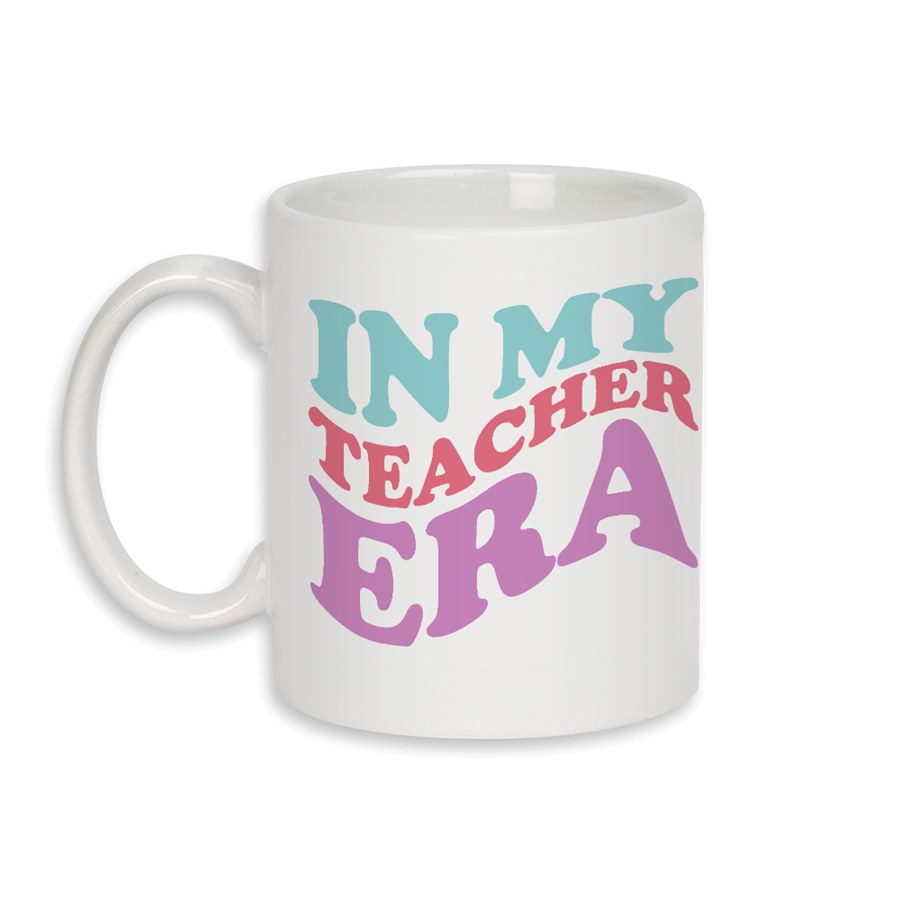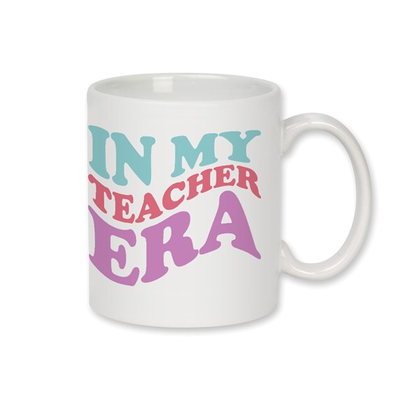 Celebrate your teacher's iconic "Teacher Era" with a personalized teacher's mug they will adore! This custom coffee mug for teachers features the fun and trendy phrase “In My Teacher Era,” in the colors of your choice, making it the perfect gift for the teacher in your life who's balancing it all with style.