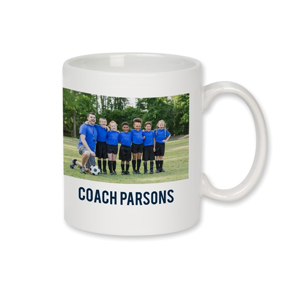 The perfect coach appreciation gift! Celebrate your favorite sports or club coach with this personalized, photo ceramic mug! Whether it's for the holidays, the end of a season, or just because, this coffee mug for coaches is the perfect way to show your love and appreciation. You can upload 1 of your favorite photos to make this Coach mug even more special and totally custom. Add any text you choose in your choice of color and font.