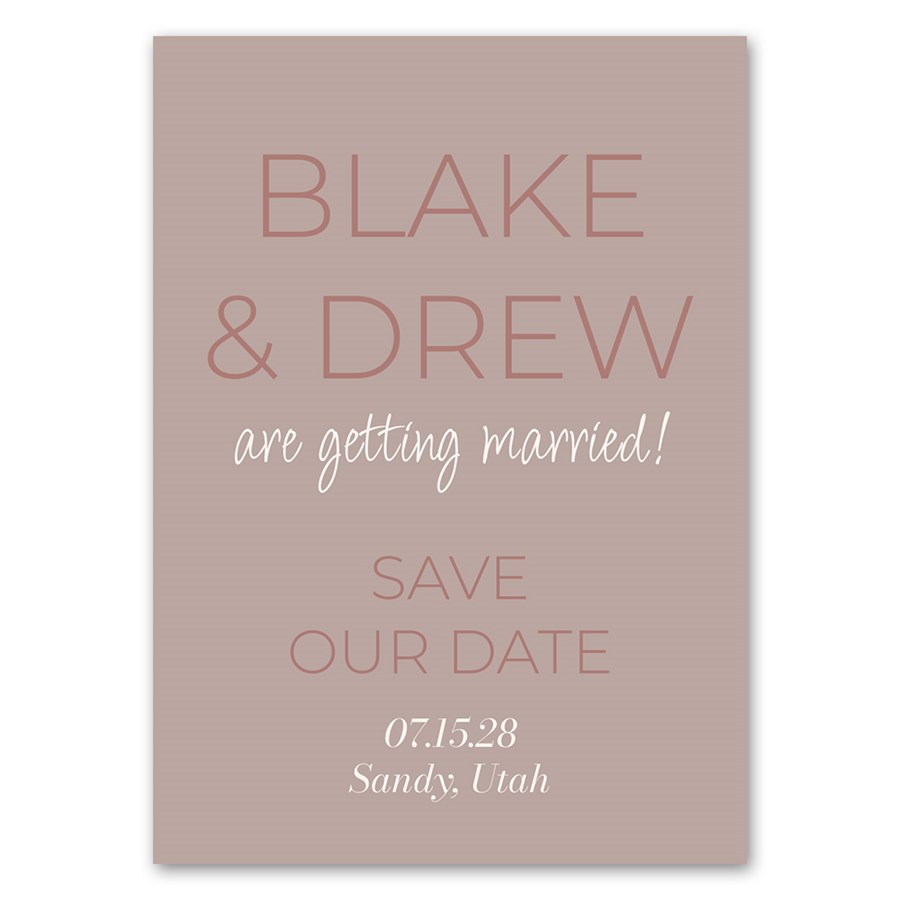 Create this beautiful Tonal Names Save the Date that's traditional and timeless. This save the date magnet features custom details. The background color and all the wording on this magnet card - including the text colors - can be changed to suit your style.
