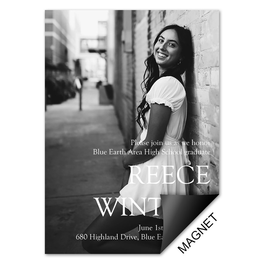 Share your graduate’s achievement in stunning style with this Clean Type Magnet Graduation Announcement. All the wording, colors and fonts on this classic announcement can be customized to suit your style. This magnet grad announcement is the perfect keepsake to commemorate and celebrate your grad’s achievements!