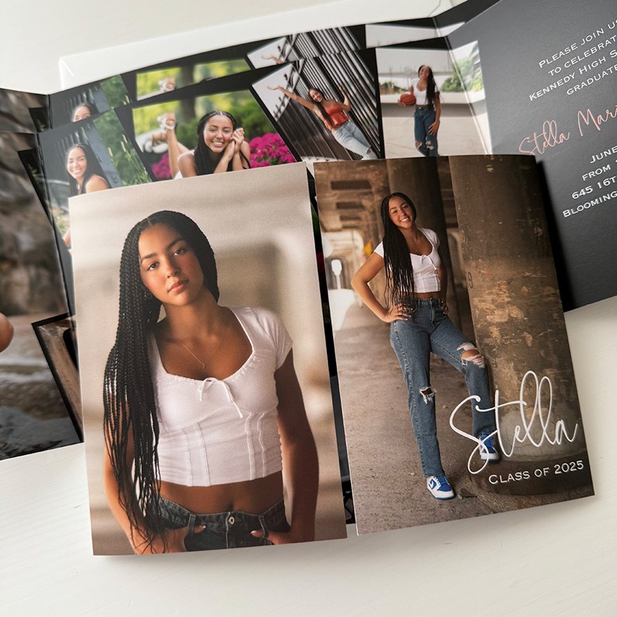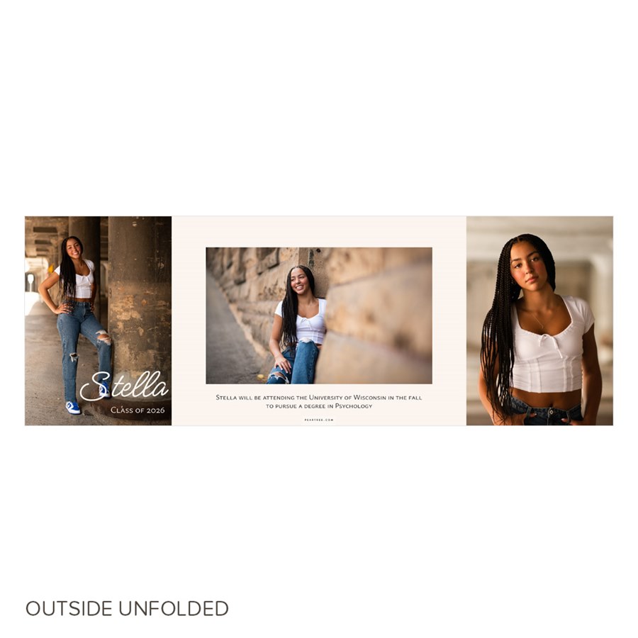 Your graduate's future is unfolding - share it in sophisticated style! This First Name, folded Graduation Announcement is the perfect design. Add lots of photos, plus your custom details and celebration information. Then, update the colors to suit your style. You can update the background color and text colors to create a custom card.