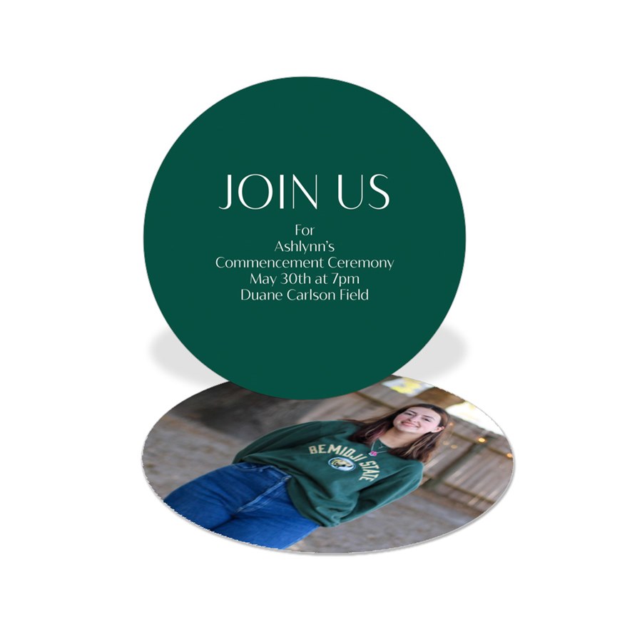 Make celebrating your graduate even more fun with the Centered Grad Graduation Insert Card. This mini card can fully customized to suit your needs – whether it's sharing graduation party details, commencement information (as shown), the graduate's Venmo or Cash App for easy gifting, future plans, or anything you can think of! All wording, colors, and fonts on this card can be customized to match the style of your graduation announcement.