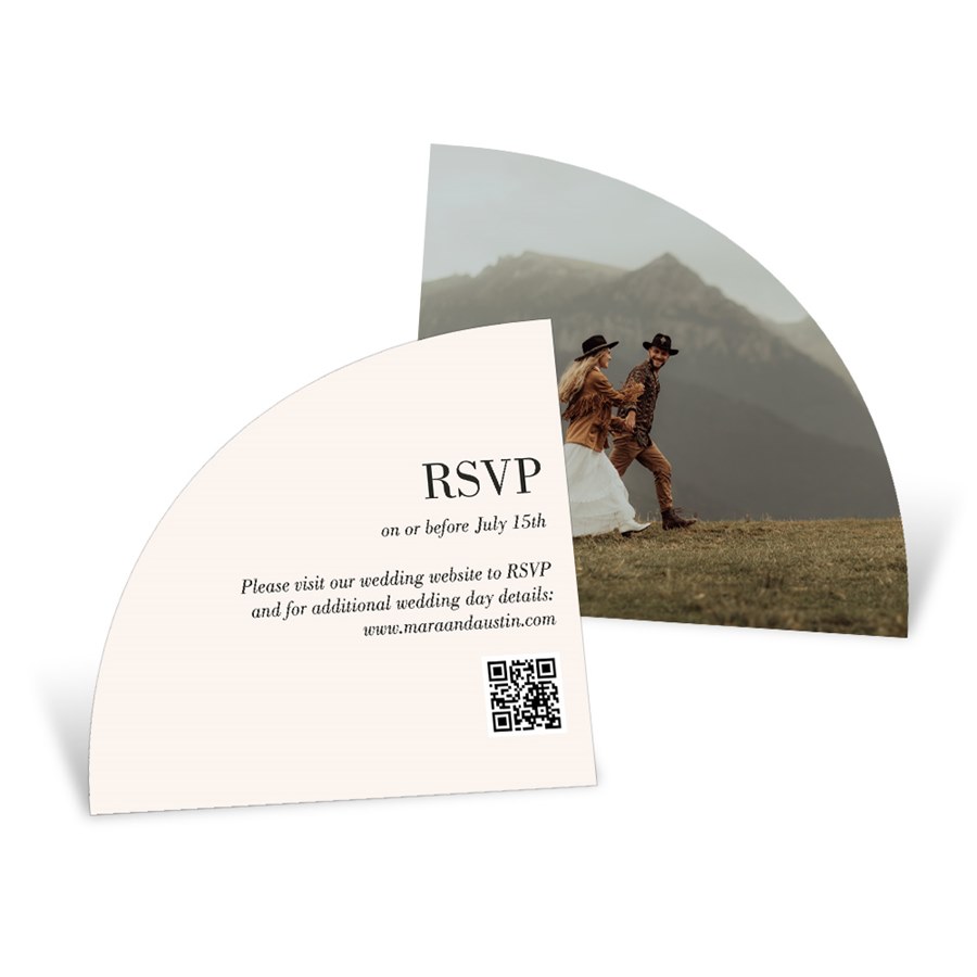 Add a special touch to your wedding celebration with these Two of Us Wedding Insert Card, perfect for sharing extra details in style. This mini card can be fully customized to suit your needs. Add accommodation info, your wedding website, RSVP details (as shown) or personalize it with any details you'd like share, without crowding your main invitation. All wording, colors, and fonts on this card can be customized to match the style of your wedding invitation. Please note: This curved-shaped insert card is not compatible with our ribbon booklet, trifold, or seal-and-send invitation formats.