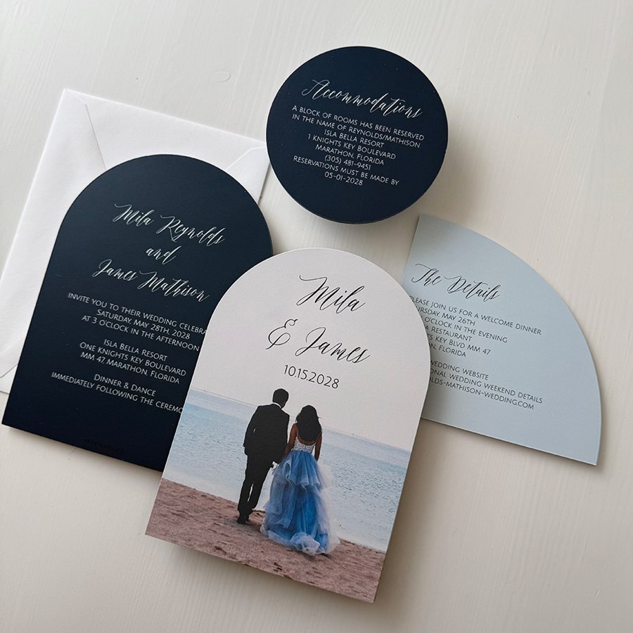 This Beautiful Image Photo Wedding Invitation features an on-trend arch shape paired with classic style. The front features your photo and custom text. These two-sided invitations also offer your choice of wording on the back. Matching enclosure cards are also available.