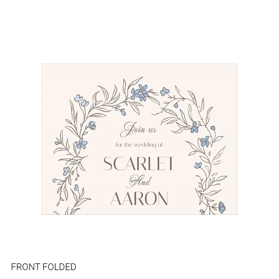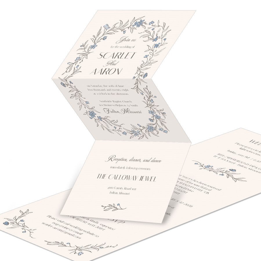 Our Framed in Floral Trifold Wedding Invitation offers a pretty, floral design perfect for sharing every detail of your special day. With three elegant panels, this folded wedding invitation unfolds to reveal your wedding information in a sleek and organized format. The front features a floral border in your choice of colors. Choose any background color with the fonts and wording of your choice.