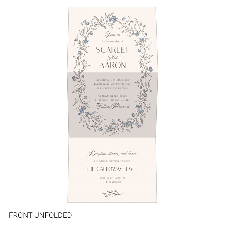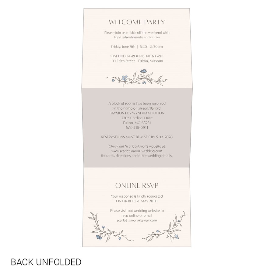 Customizable this folded wedding invitation with your chosen colors, fonts, and personal touches. This trifold invitation is a sophisticated choice for couples who want to make a lasting impression.