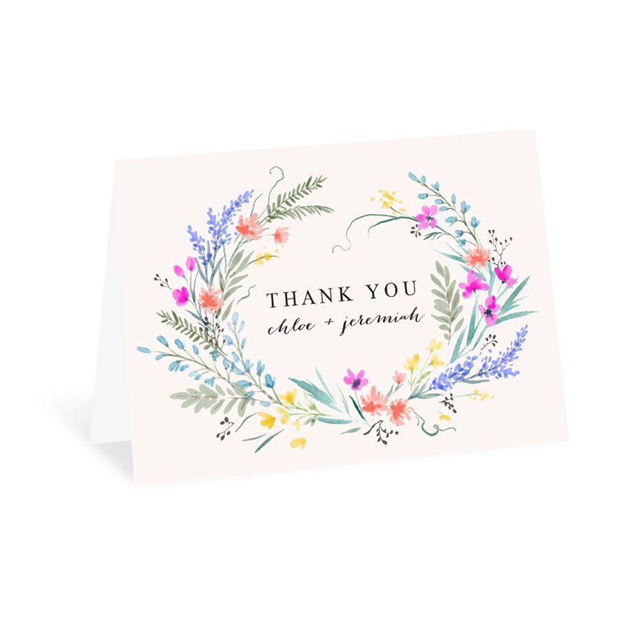 This Bright Garden wedding note card features colorful wildflowers surrounding your custom wording. Personalize it with the background color and fonts of your choice to create a one-of-a-kind thank you card.