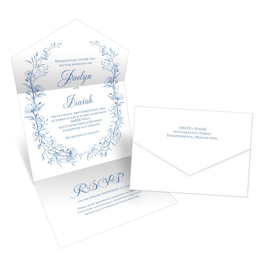 This Sweet Border Seal and Send wedding invitation features the prettiest floral illustration. You may update the color palette to any combination you choose.