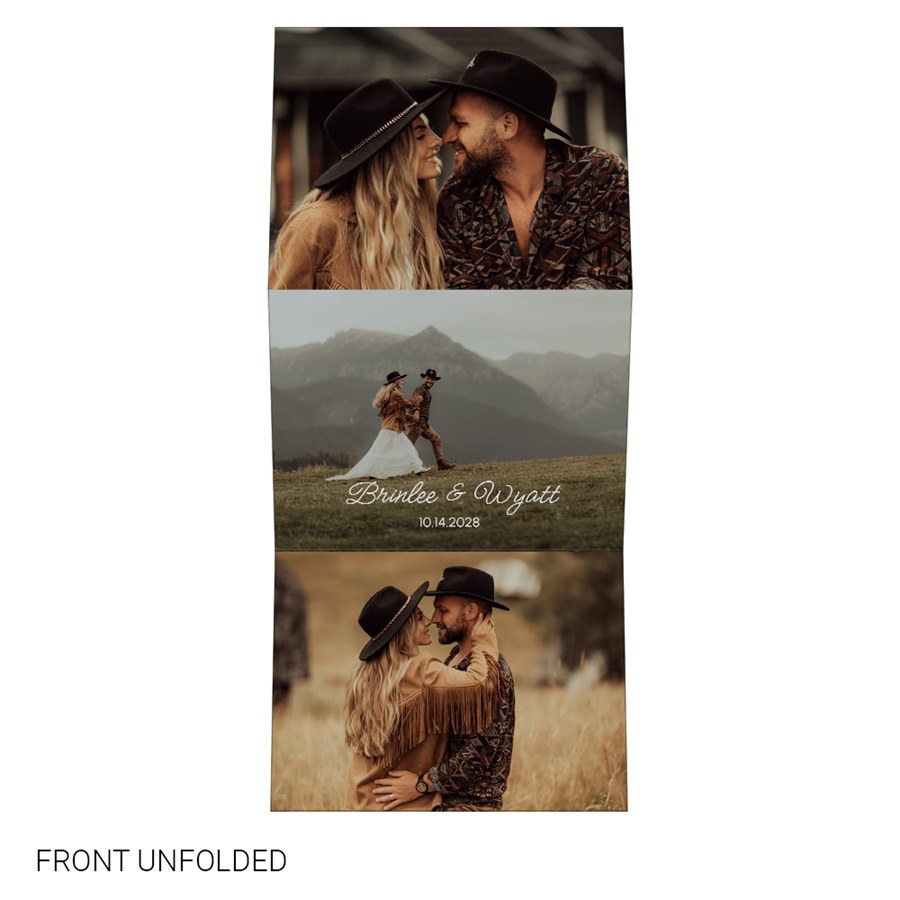 Customizable this folded wedding invitation with your chosen colors, fonts, and personal touches. This trifold invitation is a sophisticated choice for couples who want to make a lasting impression.