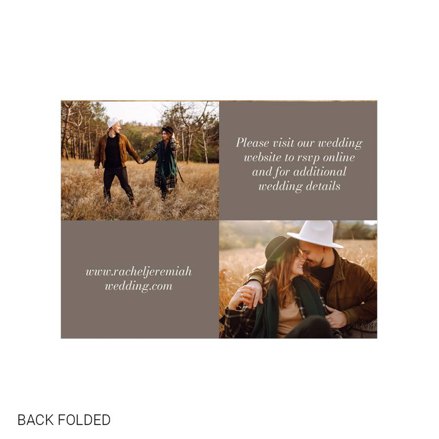 The back side panels provide space for any additional wedding and rsvp information for your guests along with 5 of your favorite photos.