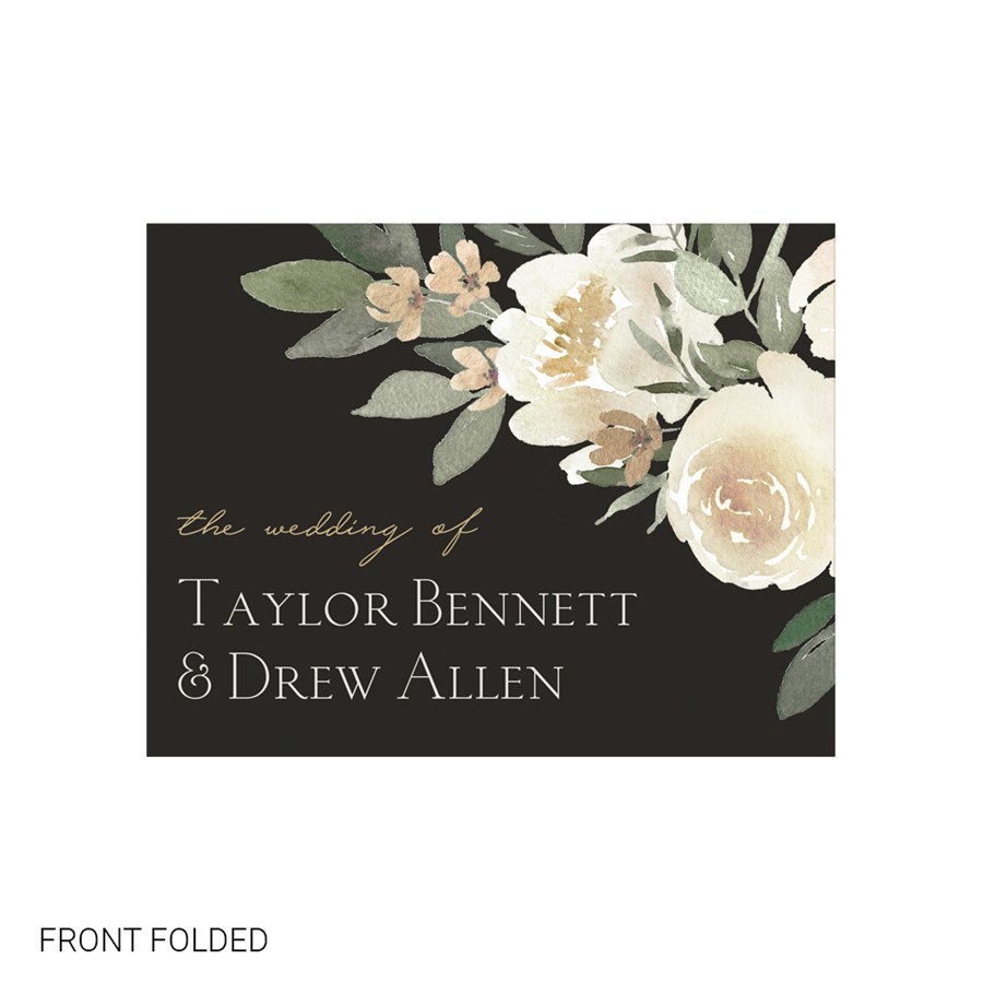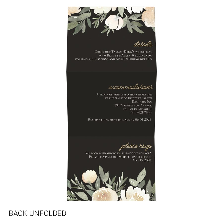 The back side panels provide space for any additional wedding information for your guests, accented with the boho floral artwork.