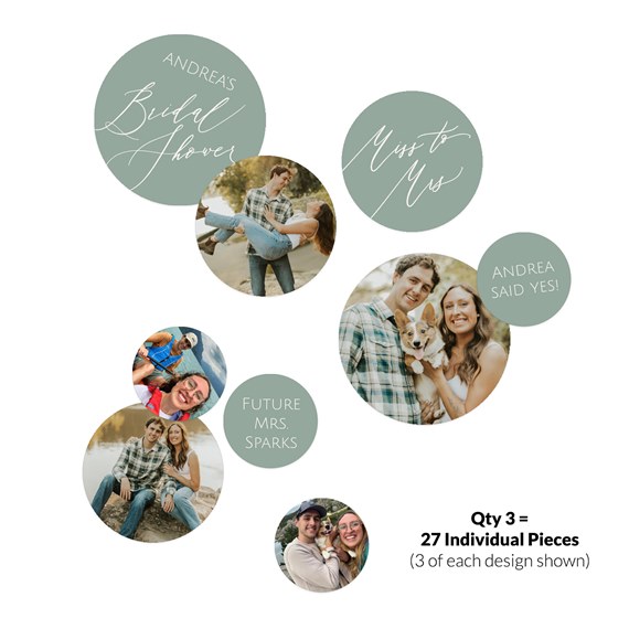 Scatter them on tables, tuck them into centerpieces or create a cute photo bunting banner with them. Personalize them by adding your photos, changing the colors and more.