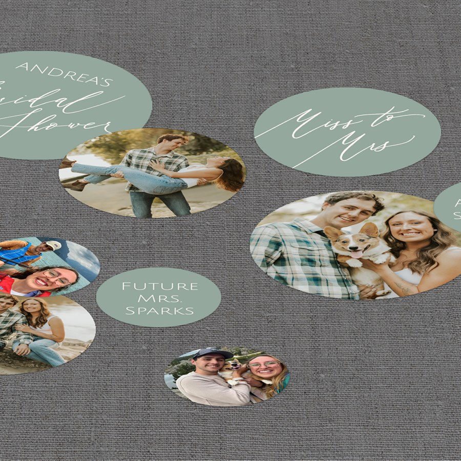 Elegant and on-trend, this Chic Script bridal shower confetti combines your photos with modern script and fully customizable colors. Perfect for scattering across tables or adding to décor!