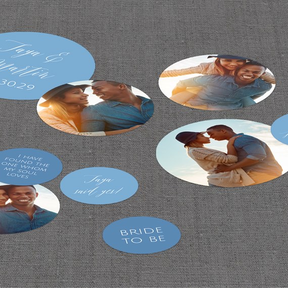 Say it loud and proud—you're getting married! This She Said Yes bridal shower jumbo confetti lets you customize every color and add your favorite engagement photos for a festive touch to tabletops.