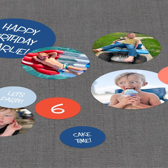 Scatter them on tables, tuck them into centerpieces or create a cute photo bunting banner with them. Personalize them by adding your photos, changing the colors and more.