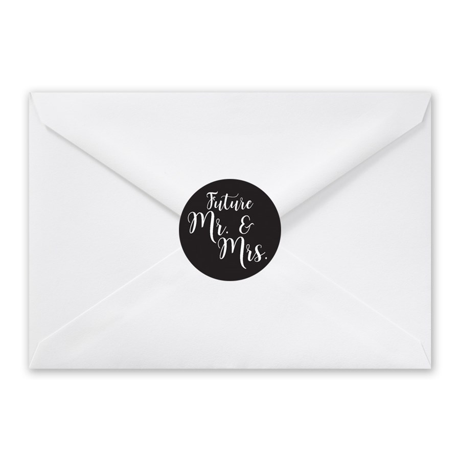 Dress up your save the dates, wedding invitations, bridal shower invitations or even your rehearsal dinner invitations with these Soon to Be envelope seals! The background color and phrase "Future Mr. & Mrs." is printed in the colors of your choice.