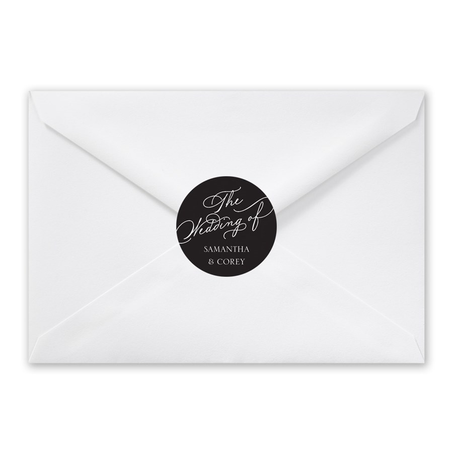 These United envelope seals feature the words "The Wedding of" plus your custom names. You may update the background color and editable text colors on this adhesive seal to suit your style.