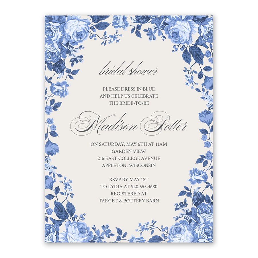 Beautiful blue blooms frame your bridal shower details in stunning style on this Vintage Blue Floral Bridal Shower Invitation. You can update the fonts and background color to the color of your choice to suit your style.