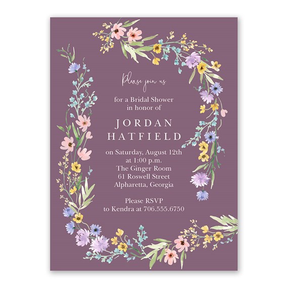 Colorful pastel floral style is yours, and it's affordable too! This Spring Blooms floral bridal shower invitation features a frame of colorful blooms in shades of yellow, pink, blue and purple. You may update the background, fonts and text colors to suit your style.