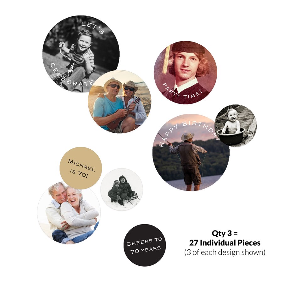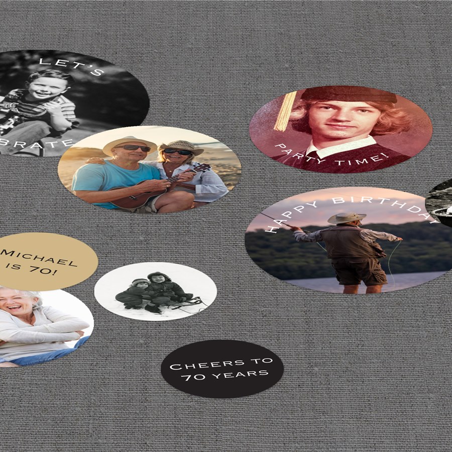 Get ready to kick off a fun celebration with our Minimal Type Jumbo Birthday Confetti! Personalize each piece with favorite photos and custom colors to create a one-of-a-kind party accent. Three of the jumbo confetti pieces feature festive curved text with the phrases “Let’s Celebrate,” “Party Time!” and “Happy Birthday” — perfect for adding a playful pop to your celebration.